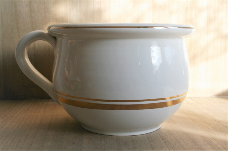 - Afmetingen: - lampetkan: doorsnede ca. 18 cm. - hoogte 31 cm. / - waskom: doorsnede 34,5 cm. - hoogte 10 cm. / kammenbakje: l. 26 cm. x br. 9 cm. x h. 4,5 cm. / zeepbakje: doorsnede 14,8 cm. / po: doorsnede 19,5 cm. - hoogte 13,5 cm.