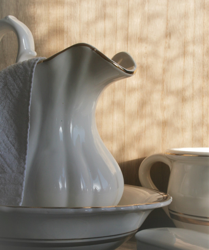 - 5-delig: lampetkan - waskom - kammenbakje - zeepbakje - po