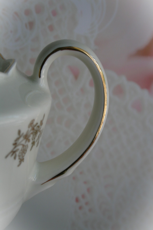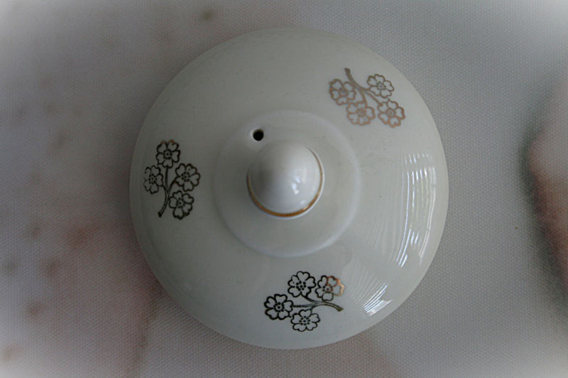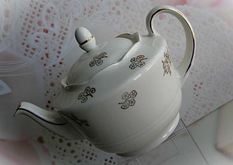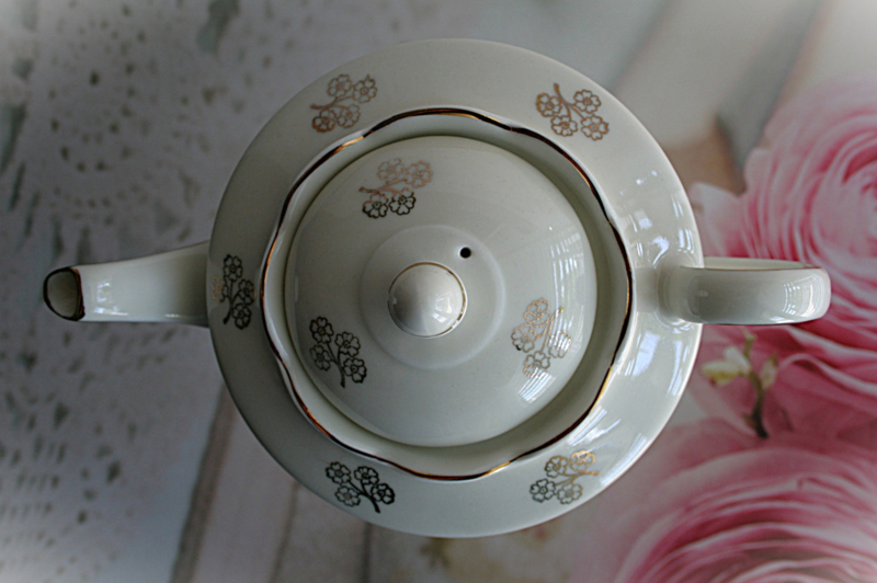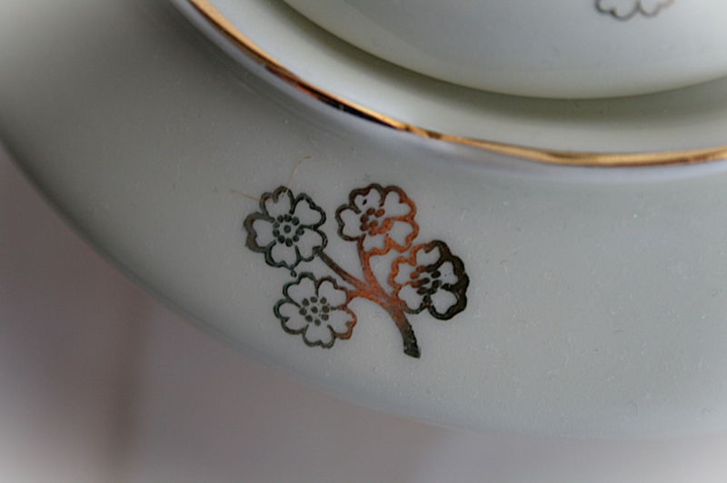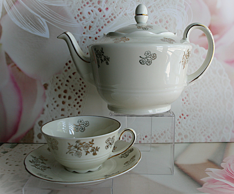 - Kleur: cremekleurige ondergrond met bloemtuiltjes in goud en met gouden biesjes